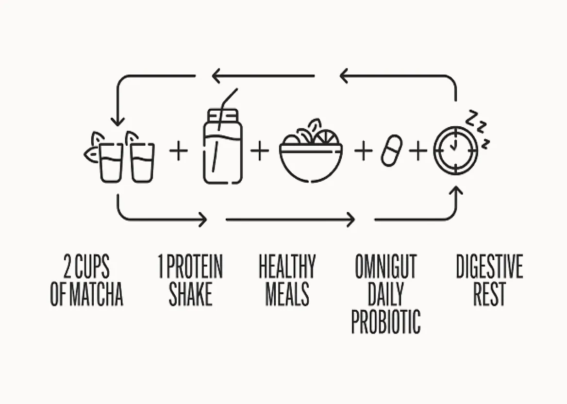 Morning: Start with two cups of Morning Matcha for a gentle energy boost and metabolism support.